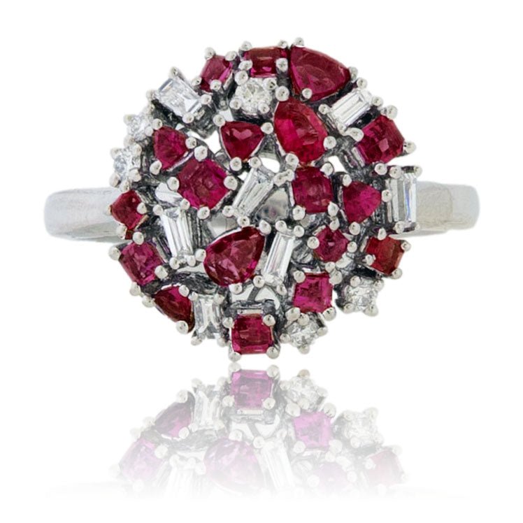 Cluster Style Red Emerald and Diamond Accented Ring