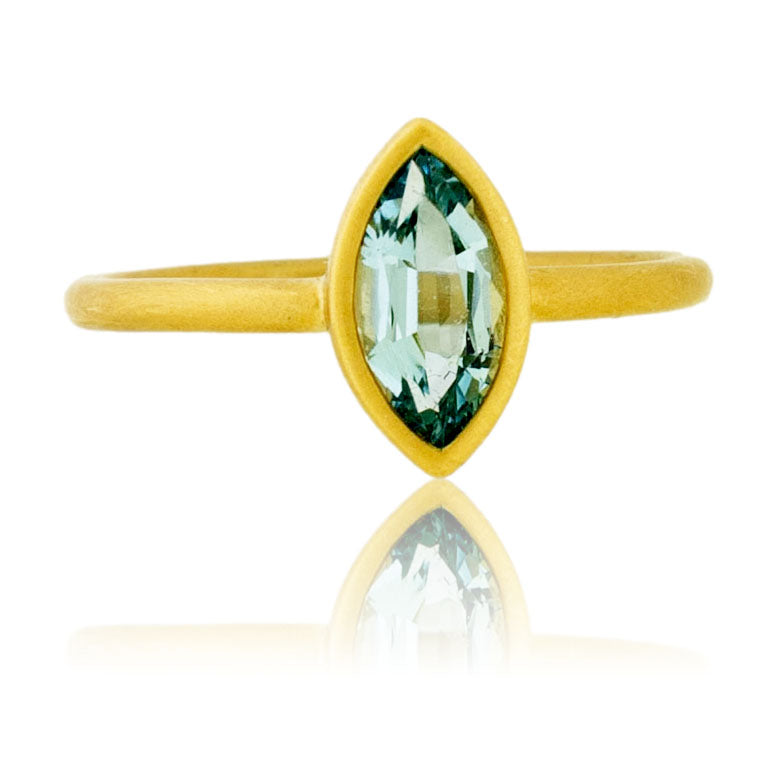 This refined Aquamarine Ring features a gracefully elongated .75 carat marquise-cut aquamarine, bezel-set in warm 14K yellow gold for a sleek, modern look. The marquise shape enhances the stone’s light-catching surface and adds a touch of vintage-inspired sophistication.