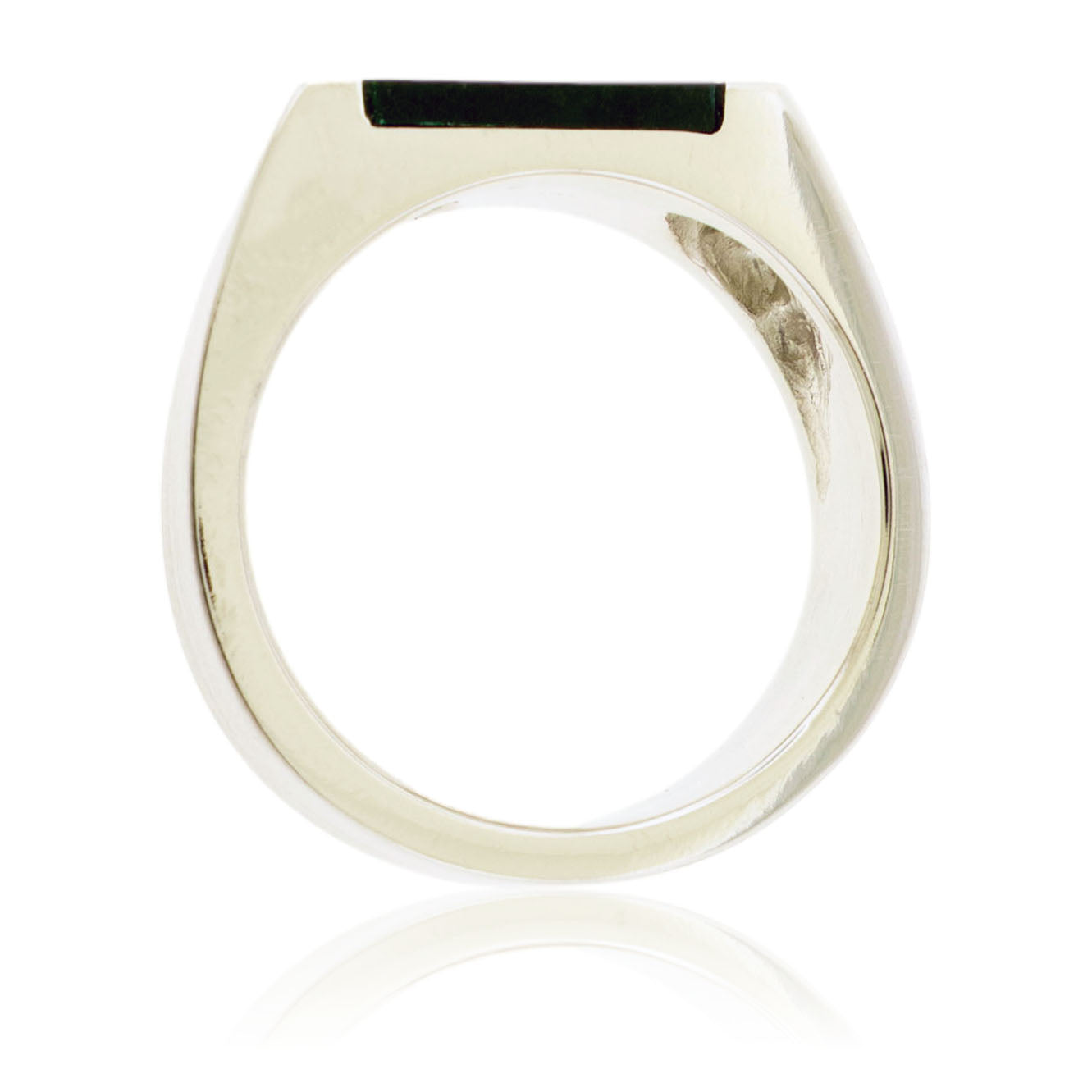 The true soul of this ring lies in your choice of inlay. This is where you make it yours. Select from a vibrant palette of genuine gemstones and rare, fascinating materials to create a piece that tells your personal story. Whether you choose the deep green bands of Malachite (pictured), the fossilized history of Dinosaur Bone, or the cosmic blue of Lapis, your ring will be a one-of-a-kind piece of wearable art, handcrafted to order in our Park City studio.