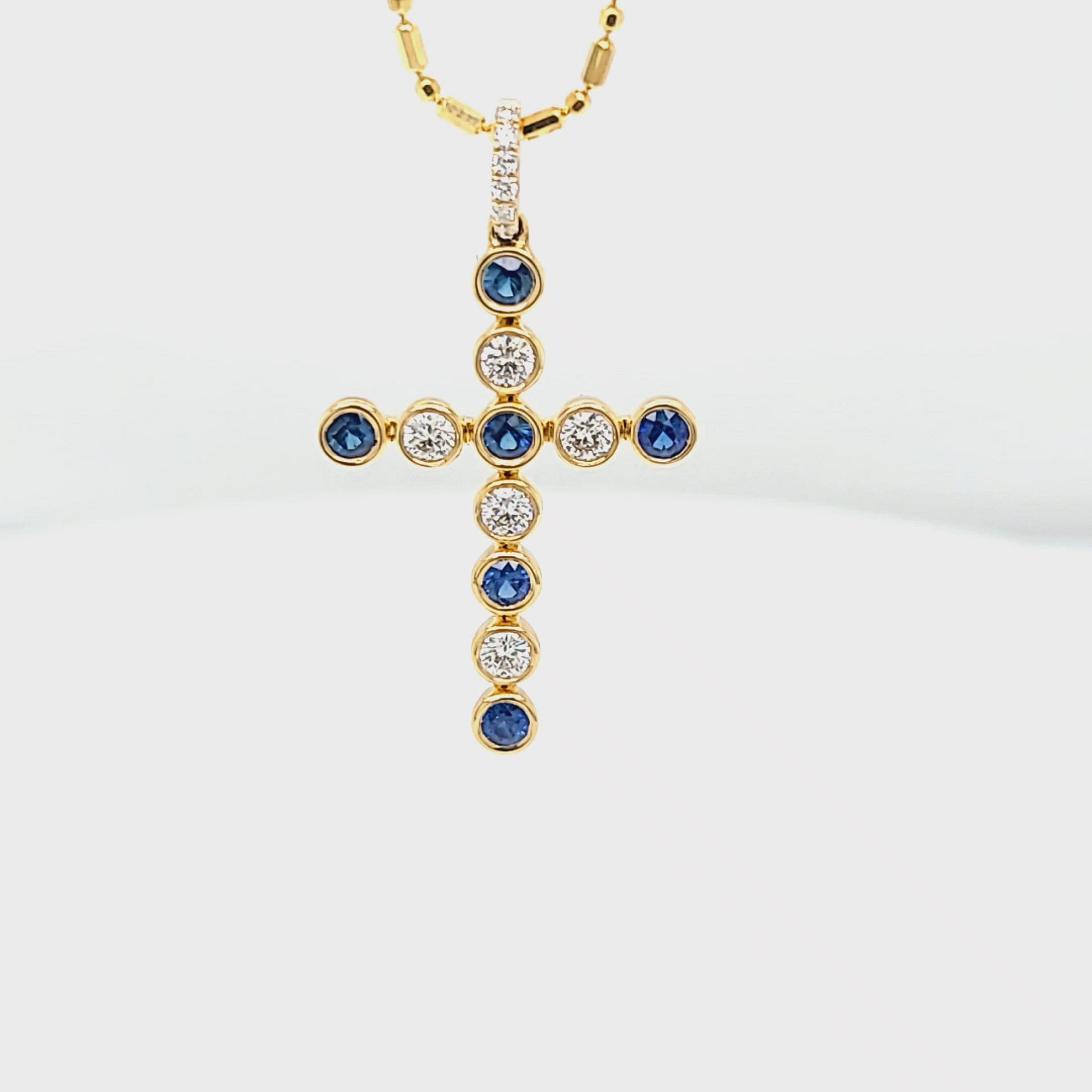 Bezel Set Diamond & Sapphire Cross Pendant