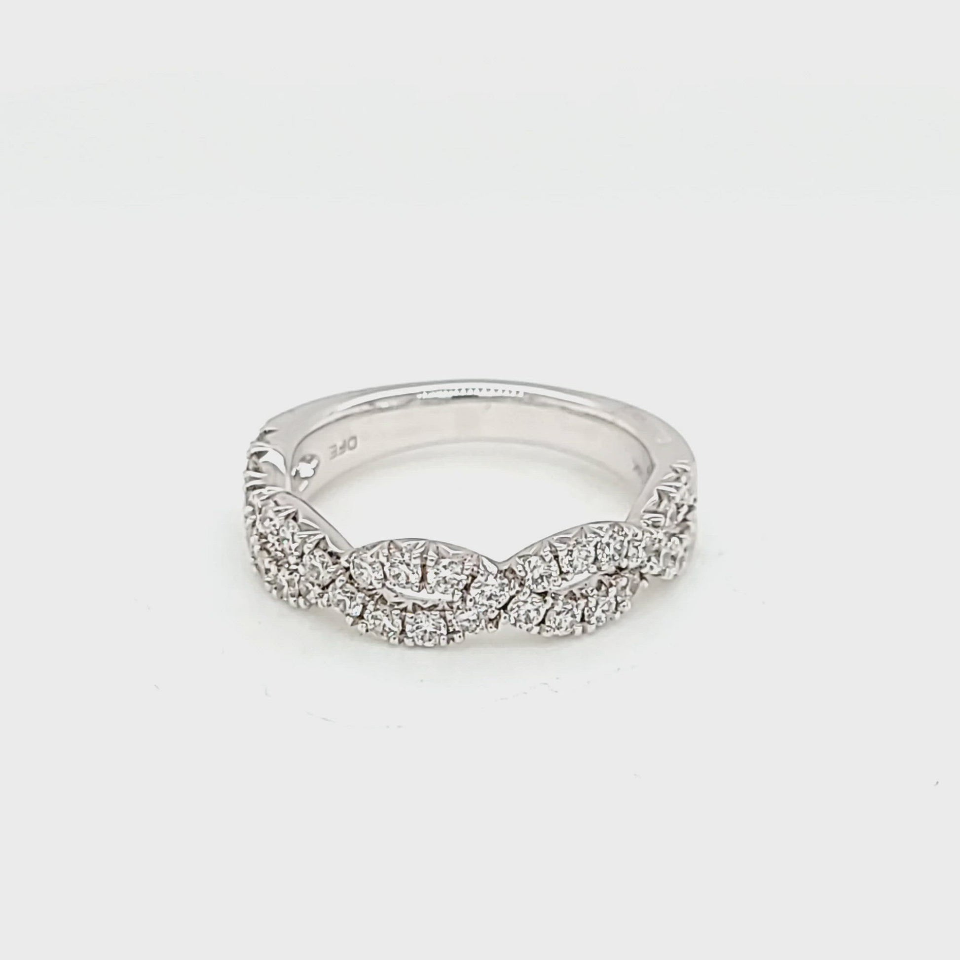 A Symphony of Light and Symbolism This Diamond Infinity Ring exemplifies Park City Jewelers' dedication to creating jewelry that is both aesthetically pleasing and rich in symbolism. The intertwining ribbons with demi-pavé diamonds offer a display of brilliance and elegance, while the infinity symbol embodies the concept of everlasting love. The 14K white gold setting provides a luminous and luxurious backdrop, enhancing the sparkle of the diamonds.