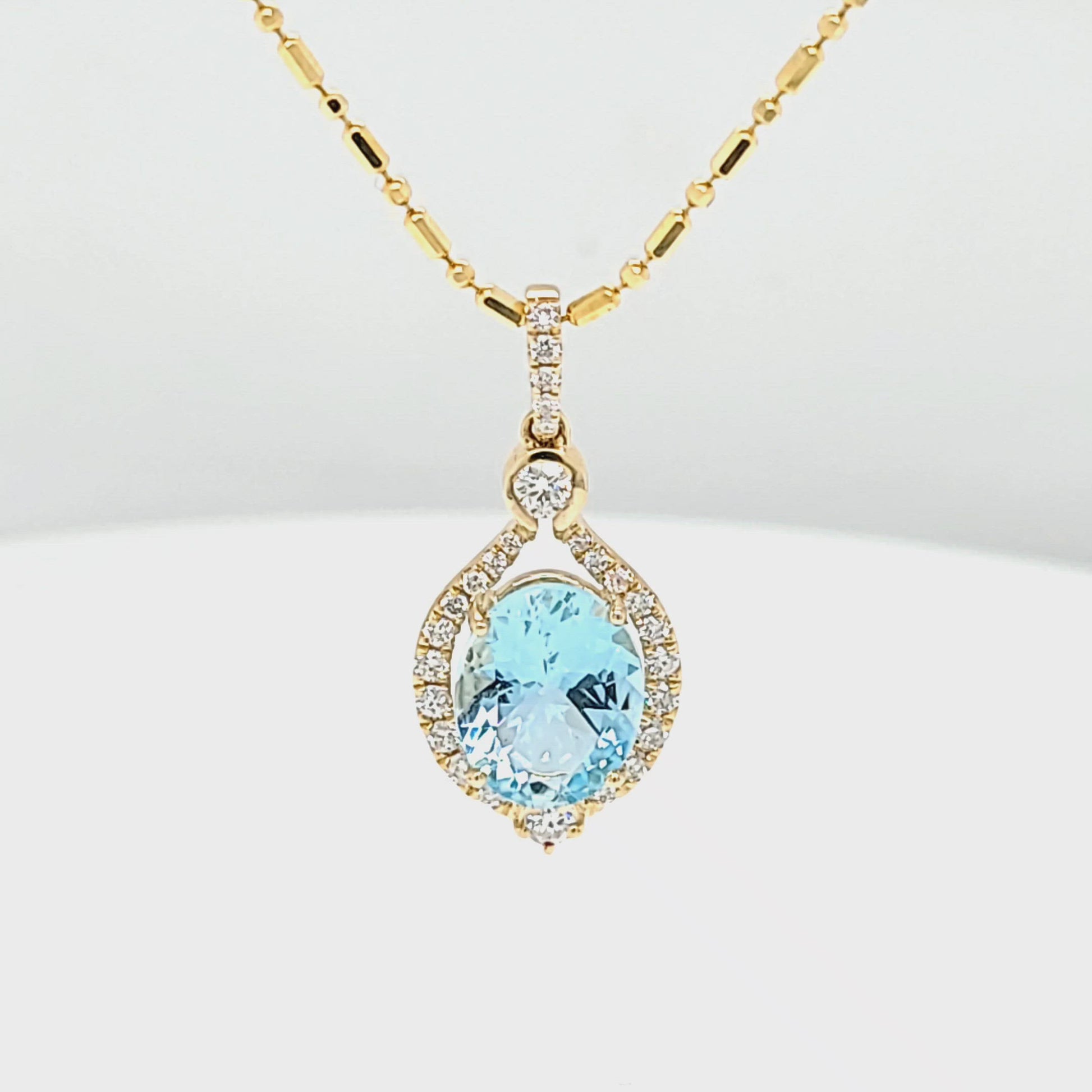 14K Yellow Gold 2.11ctw Aquamarine & .35ctw Diamond Pendant