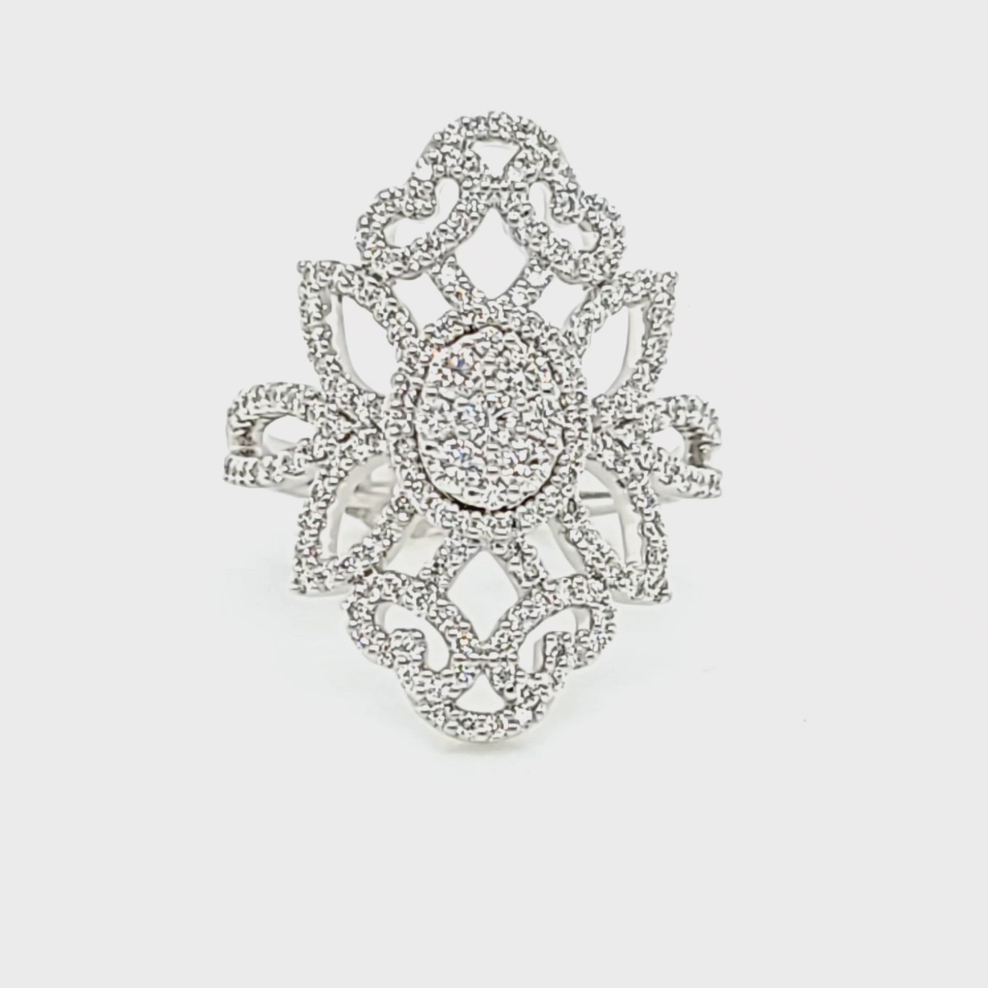 Step back in time with the Diamond Art Deco Style Ring from Park City Jewelers. This ring is a stunning homage to the timeless elegance of the Art Deco era, beautifully crafted in 14K white gold. It features 1.03ctw of diamonds, meticulously arranged to capture the distinctive geometric and symmetrical designs characteristic of the Art Deco period. The diamonds shimmer with a brilliance that enhances the ring's vintage charm, making it a perfect piece for those who appreciate the fusion of historical artistry and modern craftsmanship.