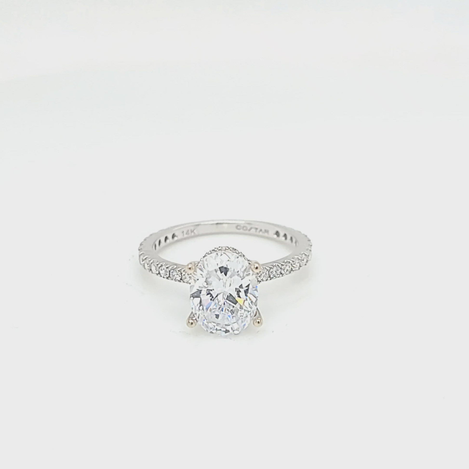 Diamond & Oval CZ Center Stone Engagement Ring with Hidden Halo