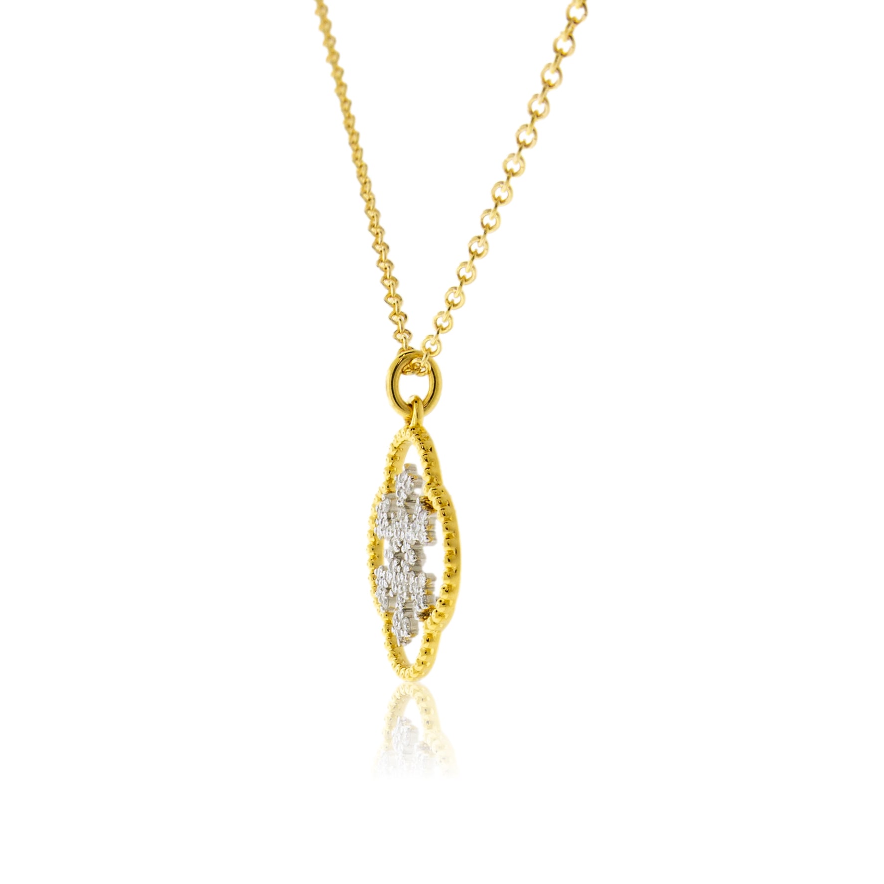 14K White & Yellow Gold .44ctw Snowflake Pendant with Braid Frame on Chain