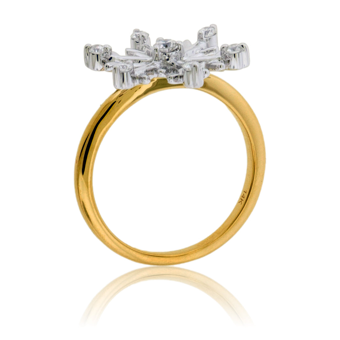 Capture the magic of winter all year long with our stunning Diamond Snowflake Ring. Crafted in your choice of 14K white, yellow, or rose gold, this enchanting design showcases seven brilliant round diamonds totaling .20 carats. Each diamond is thoughtfully set to form a dazzling snowflake, symbolizing individuality, beauty, and transformation.