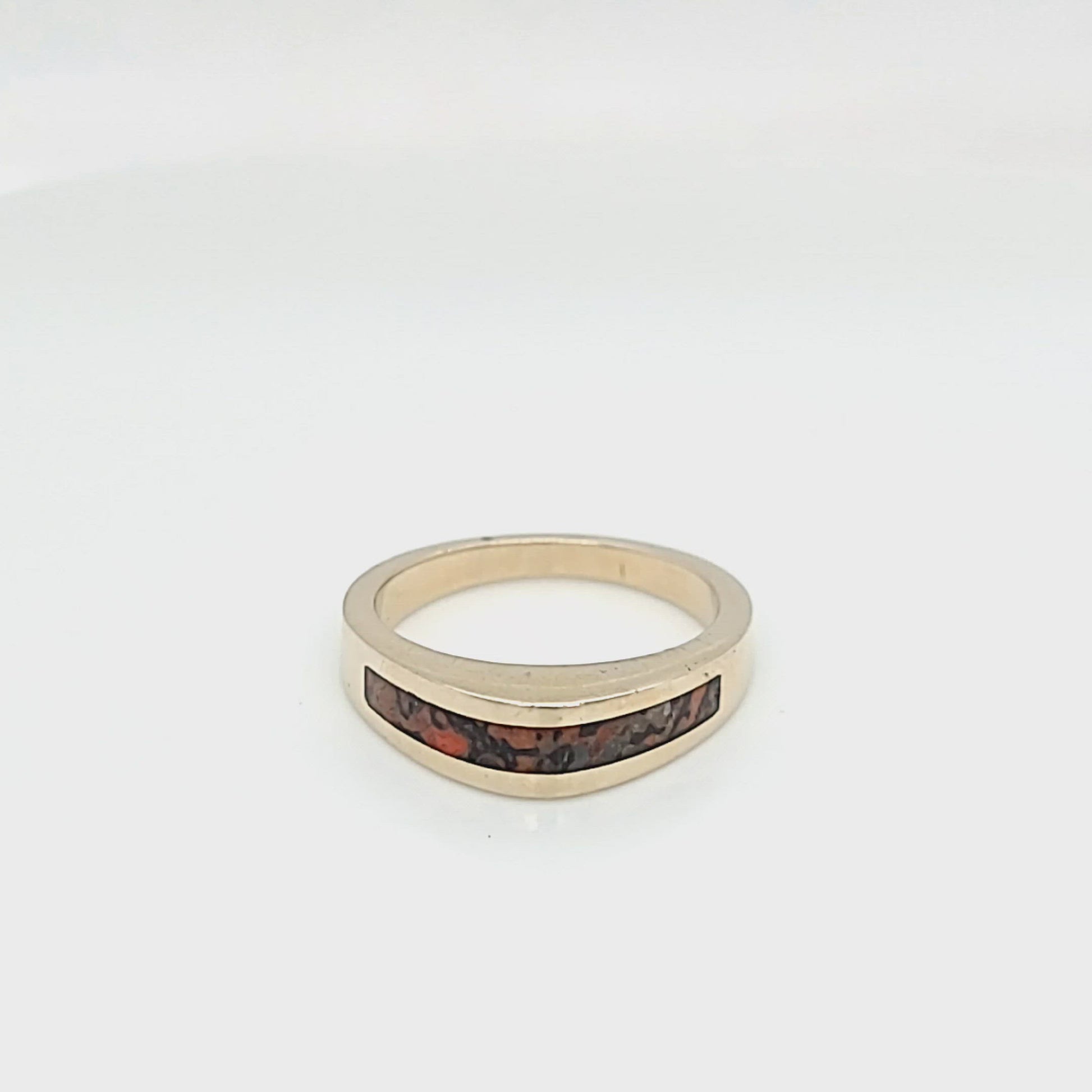 Painstakingly handcrafted by our master artisans, this exquisite ring features a primeval dinosaur bone inlay, perfectly trimmed and polished to grace the center stage of the domed band. Every intricate detail of this ring is a testament to our commitment to excellence and unique design. The dinosaur bone, a relic of the Jurassic age, offers an intriguing fusion of history and fashion.