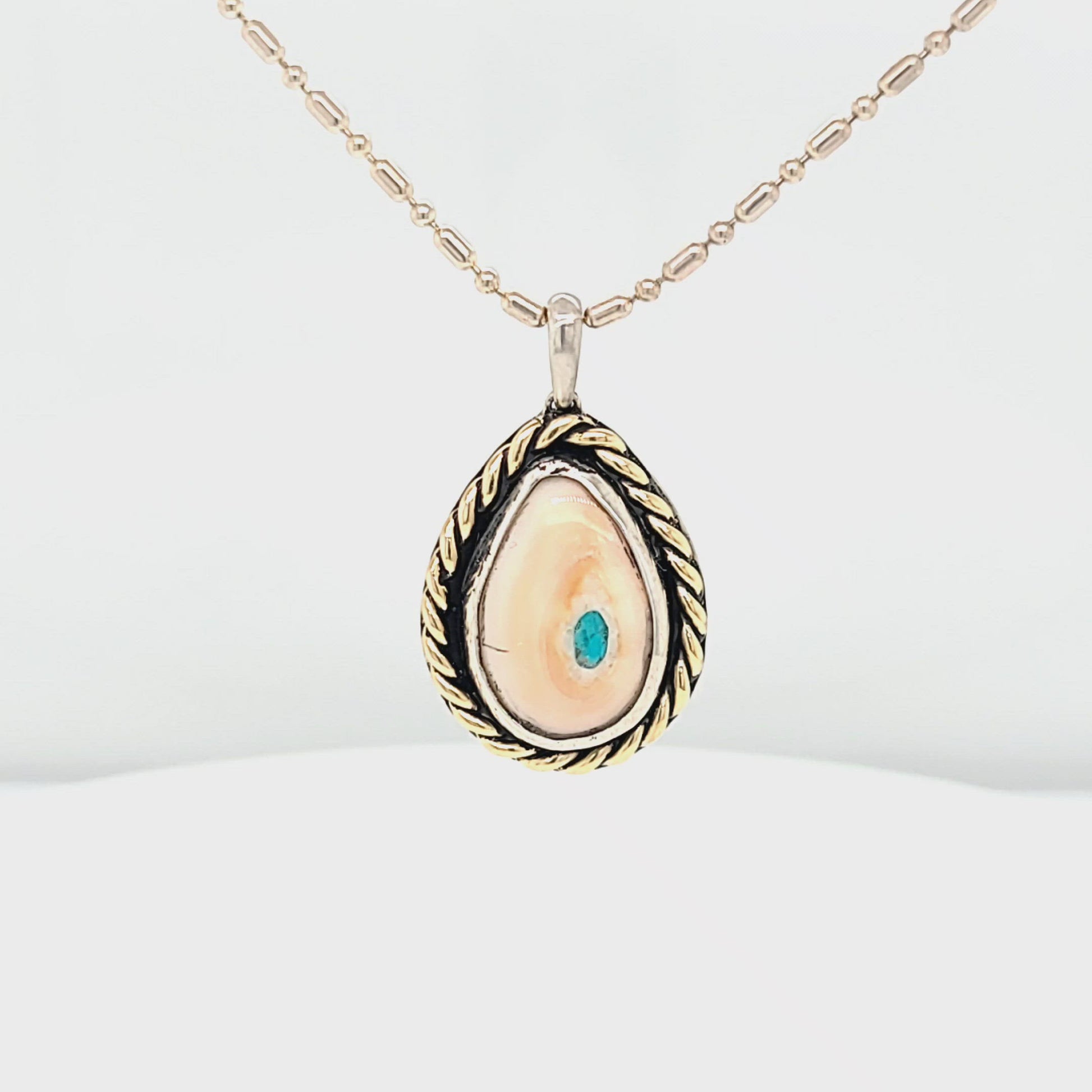 A tribute to the hunter's journey and the landscape of the West, this extraordinary pendant unites three iconic elements in one beautiful design: your personal elk ivory, a touch of vibrant turquoise, and a classic golden braid. This piece is a powerful symbol, evoking the rich earth of the ivory, the brilliant blue of a western sky, and the steadfast strength of the hunting tradition. It’s a sophisticated and deeply meaningful way to tell your story.