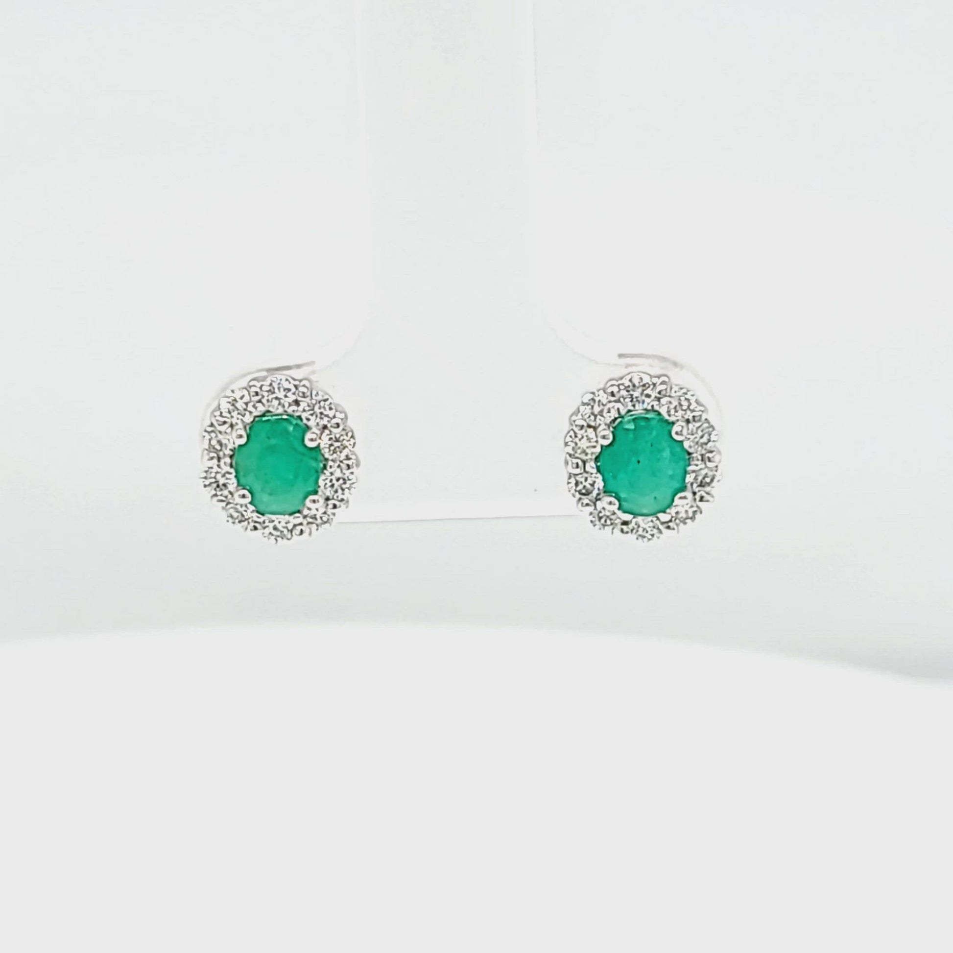 Emerald and Diamond Halo Stud Earrings