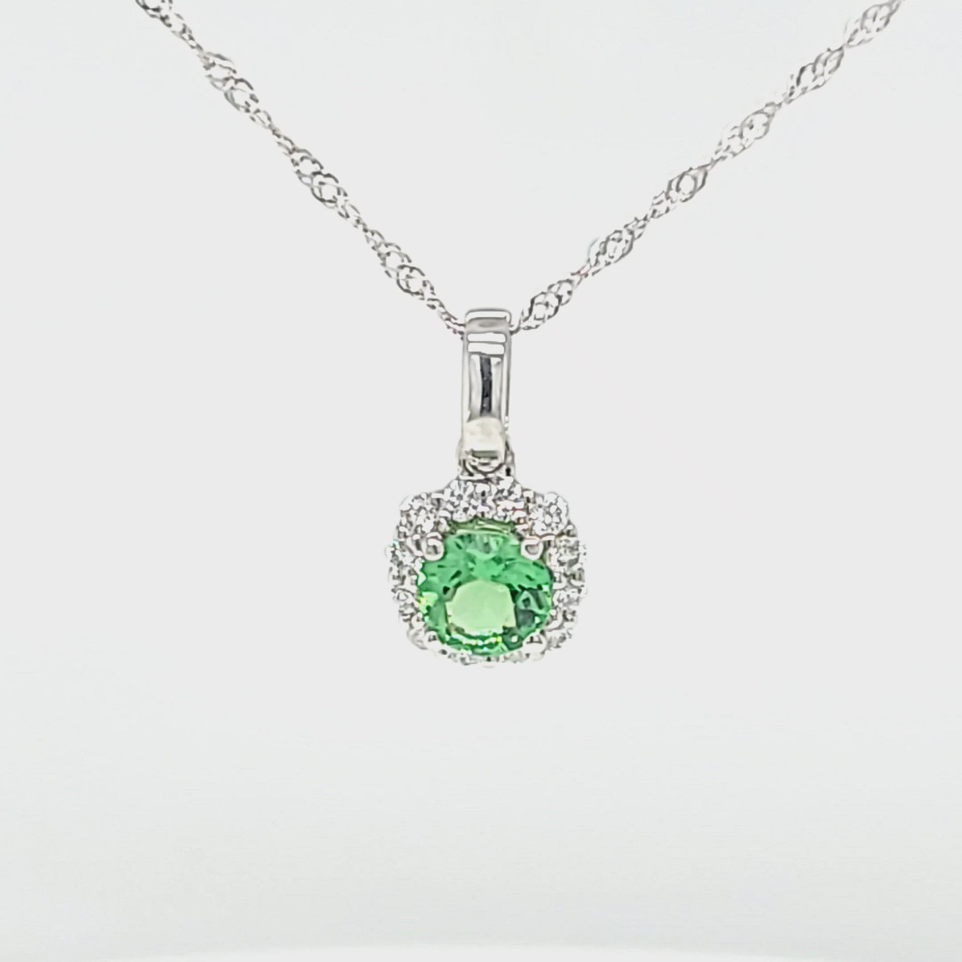 Green Tsavorite Garnet & Diamond Halo Pendant