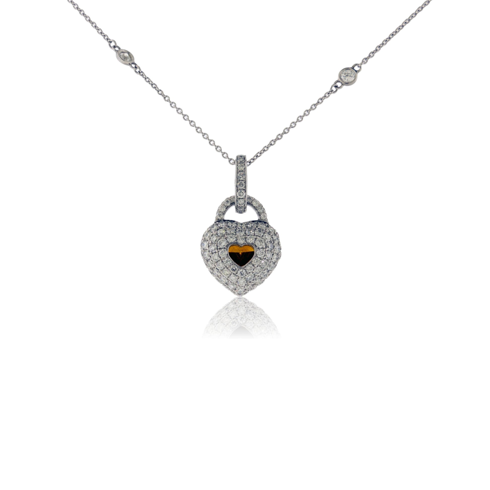 Indulge in the brilliance of this one-of-a-kind Heart Fancy Brown Diamond Necklace, where timeless romance meets contemporary luxury. Crafted in a harmonious blend of platinum and 18K yellow gold, this pendant showcases a breathtaking 1.86ctw fancy brown diamond at its heart, exuding warmth and sophistication.
