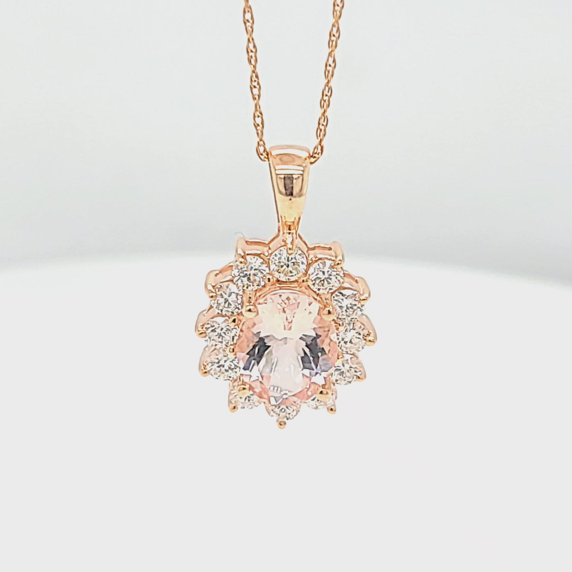 14K Rose Gold 1.00ctw Diamond & 1.60ctw Morganite Pendant w/Chain