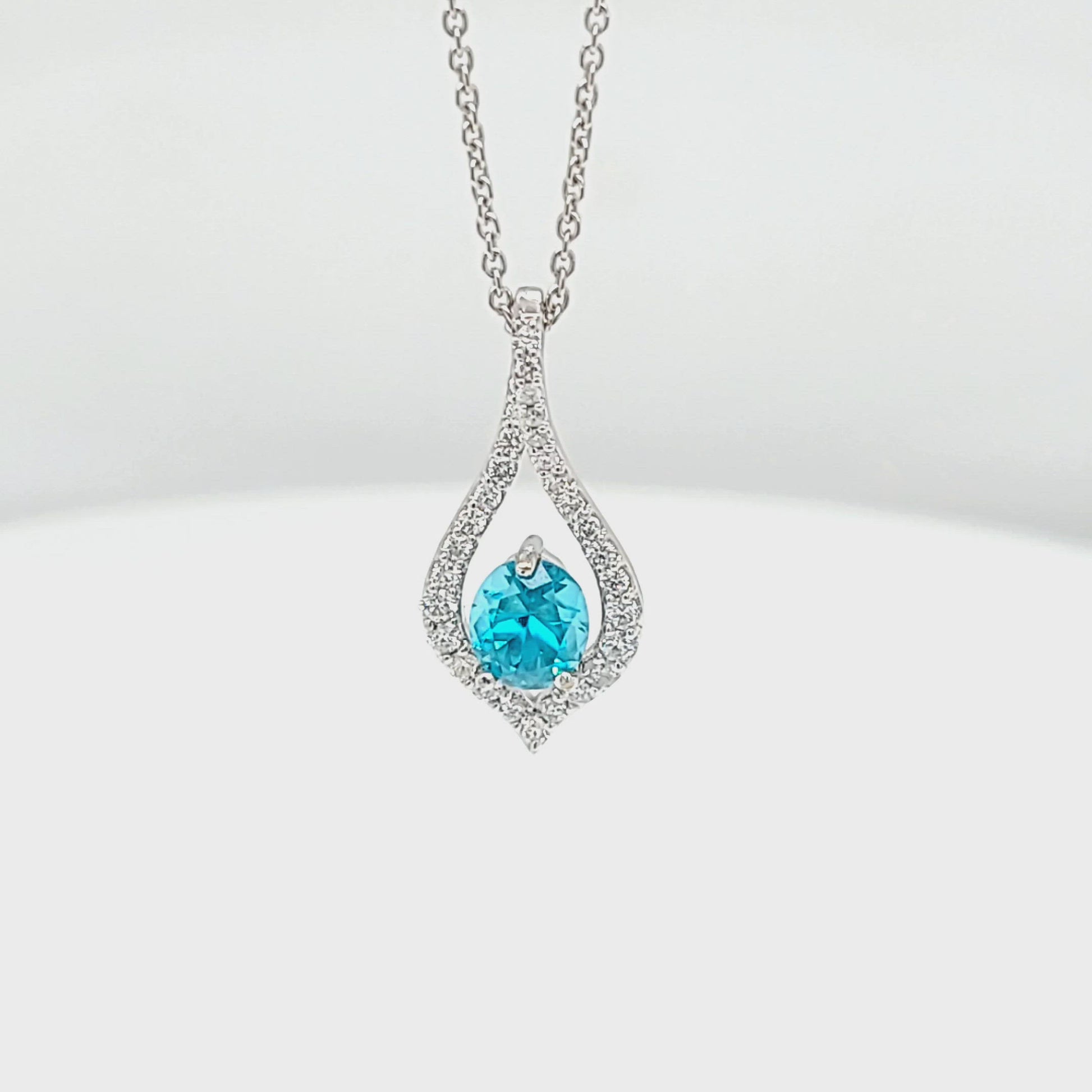 14K White Gold 1.25ctw Blue Zircon & .27ctw Diamond Outline Pendant