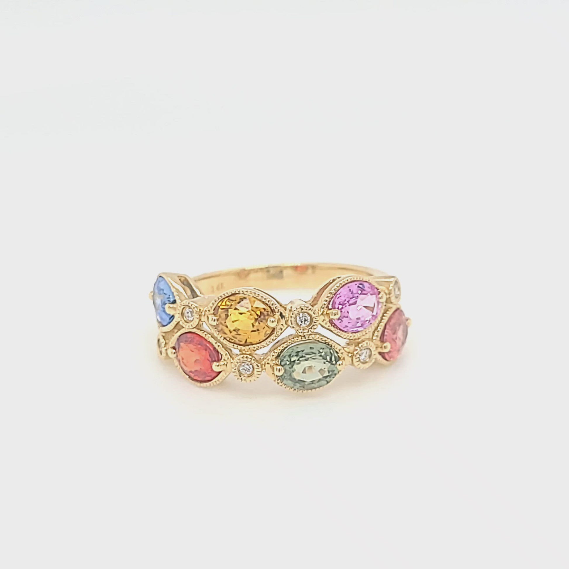 14K Yellow Gold 2.97ctw Rainbow Sapphire & .05ctw Diamond Ring