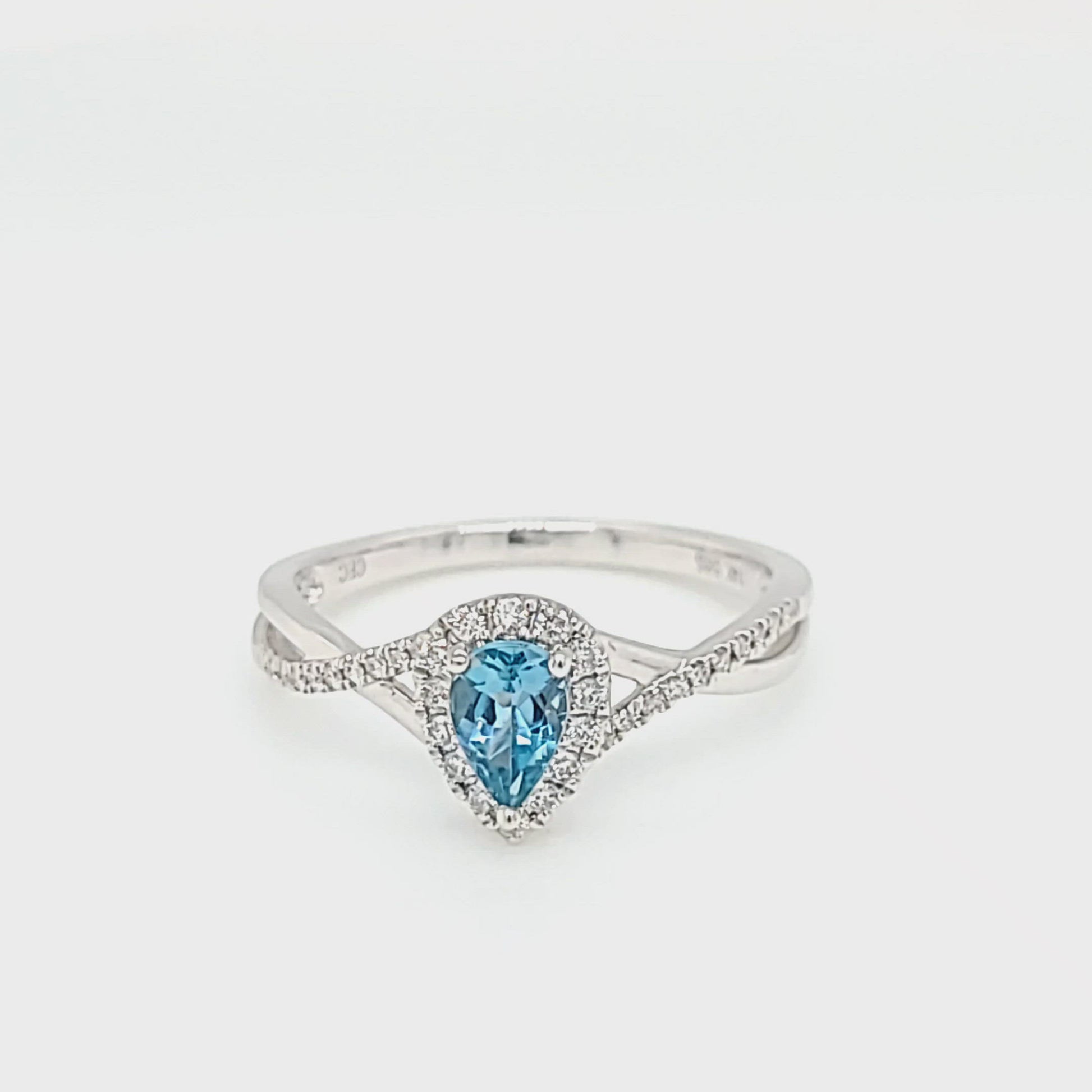 Embrace the captivating allure of the deep sea with the Pear Aquamarine and Diamond Halo Ring from Park City Jewelers. This exquisite piece, with its celestial aquamarine centerpiece and constellation of diamonds, mirrors the serene and mysterious depths of ocean waters under the gentle caress of moonlight.