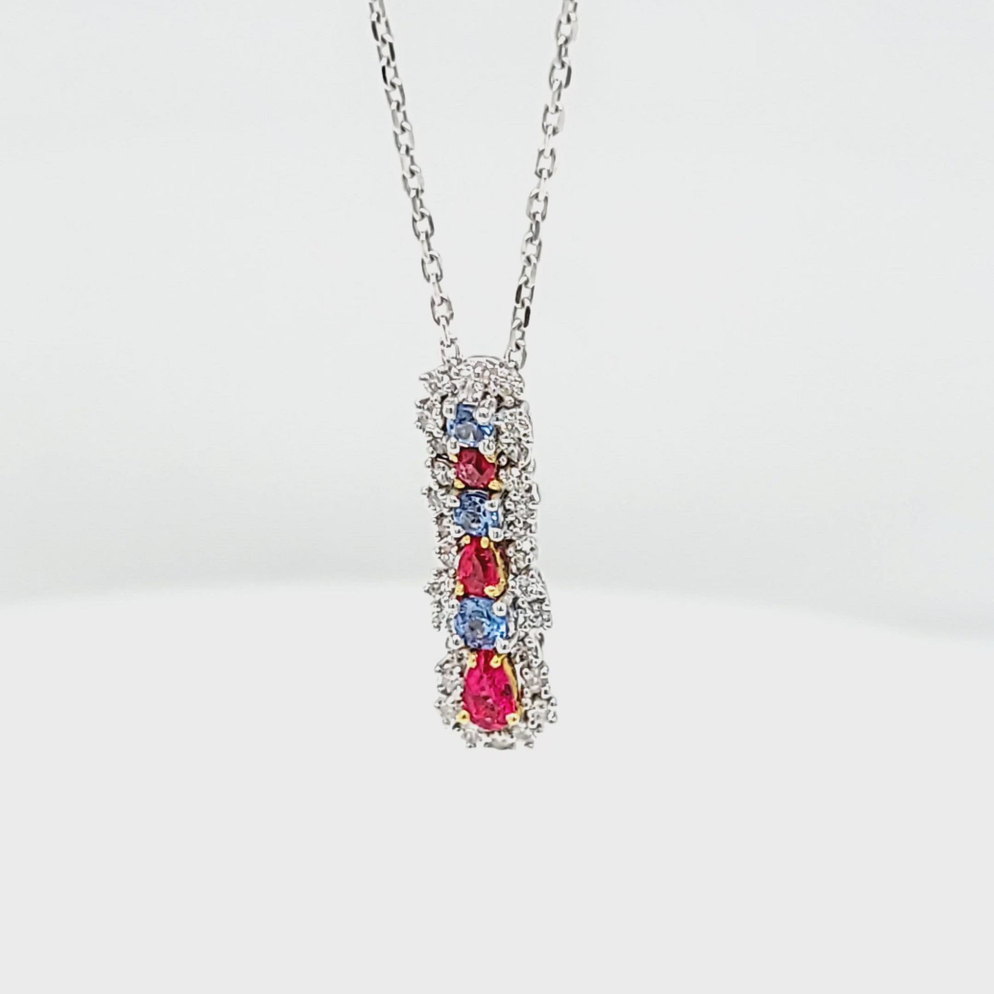 Platinum .13ctw Red Emerald, .14ctw Benitoite, & .16ctw Diamond Pendant w/Chain