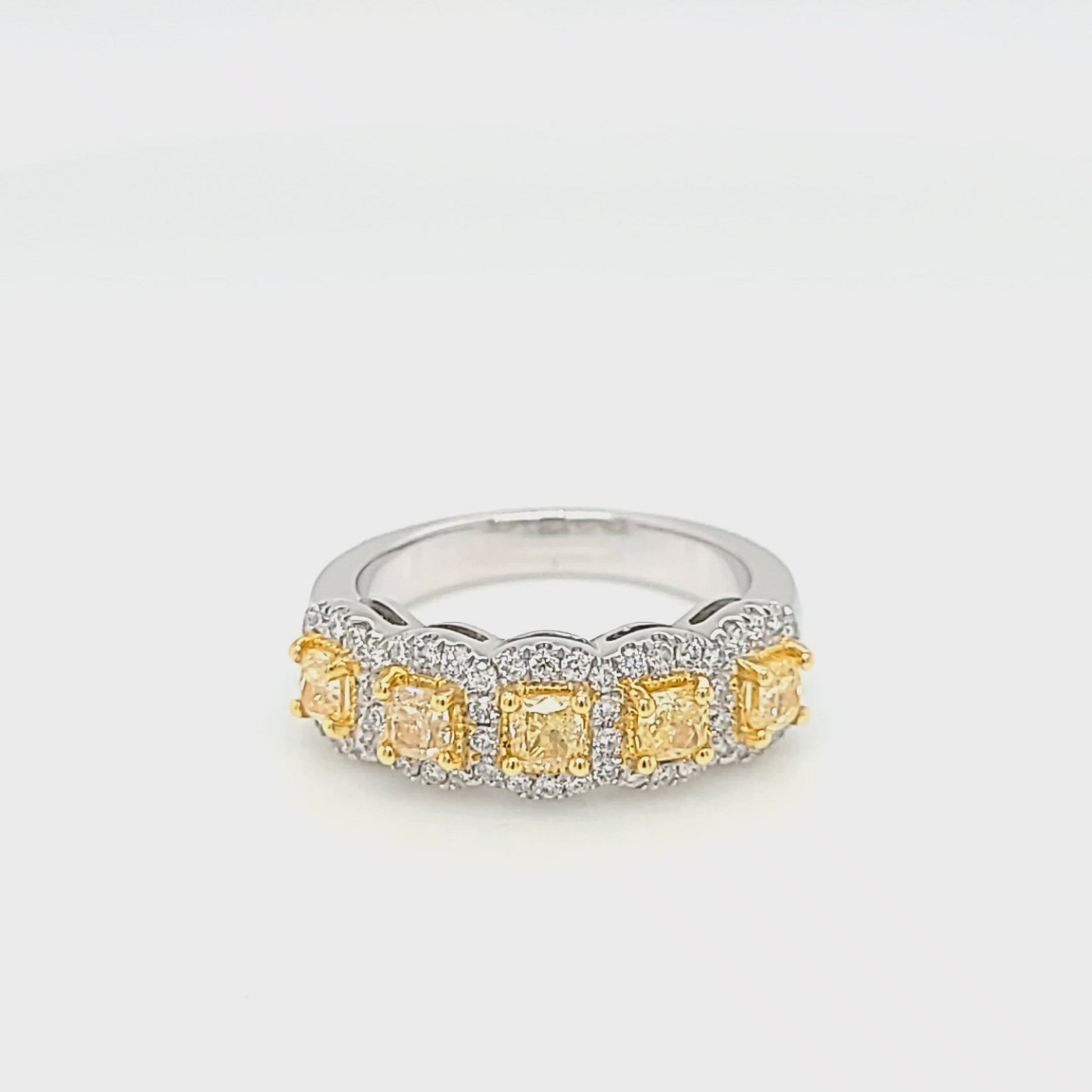 18K Yellow Gold & White Gold .38ctw Diamond (54) & .87ctw Yellow Diamond Ring