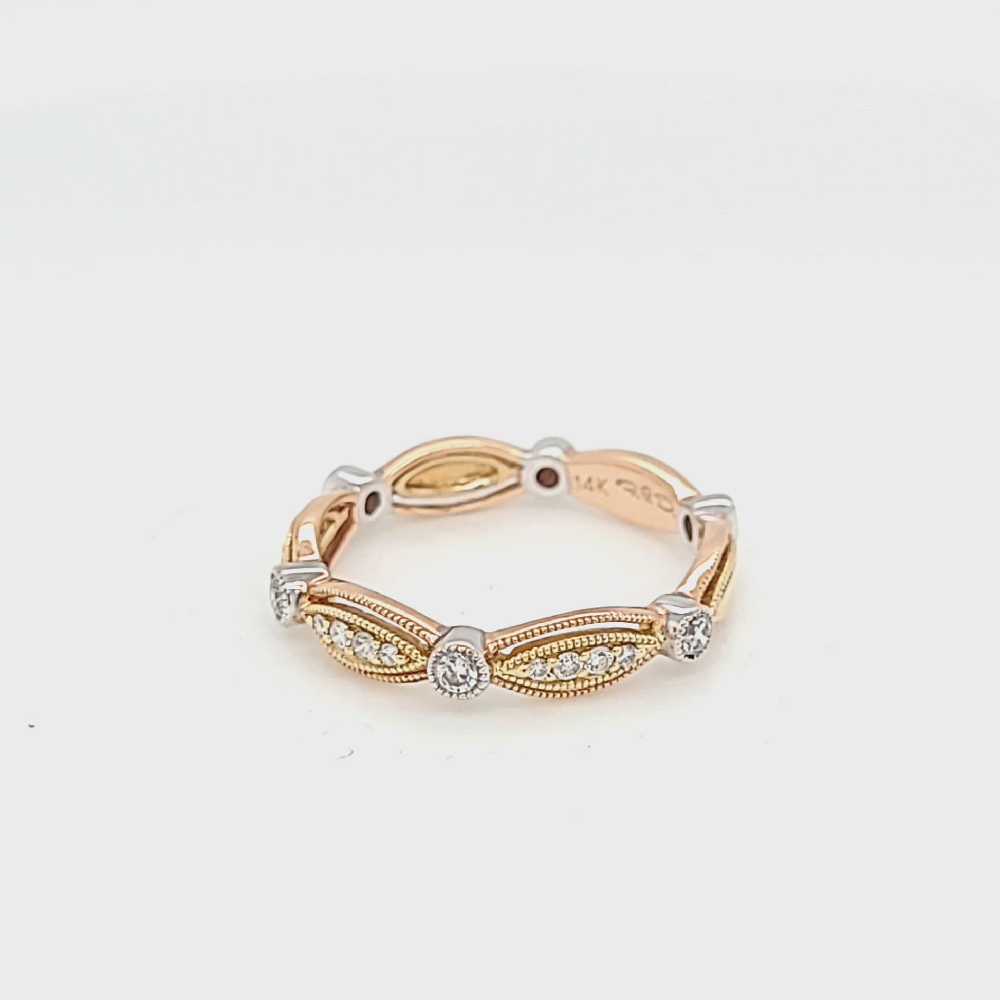 14K White, Yellow and Rose Gold Interlaced Band with .24ctw Diamond Ring