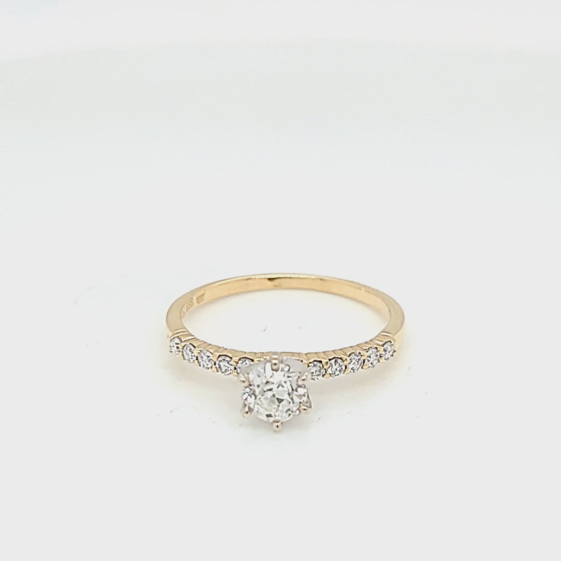 14K Yellow Gold Old European Cut Round Center Diamond and .15ctw Round Accent Diamonds