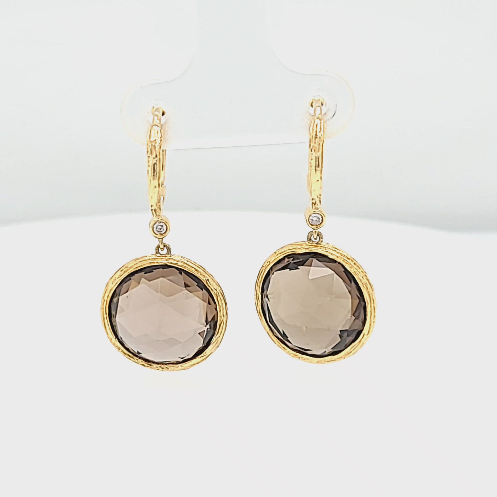 14K Yellow Gold 14.0ctw Smoky Quartz & .04ctw Diamond Earrings