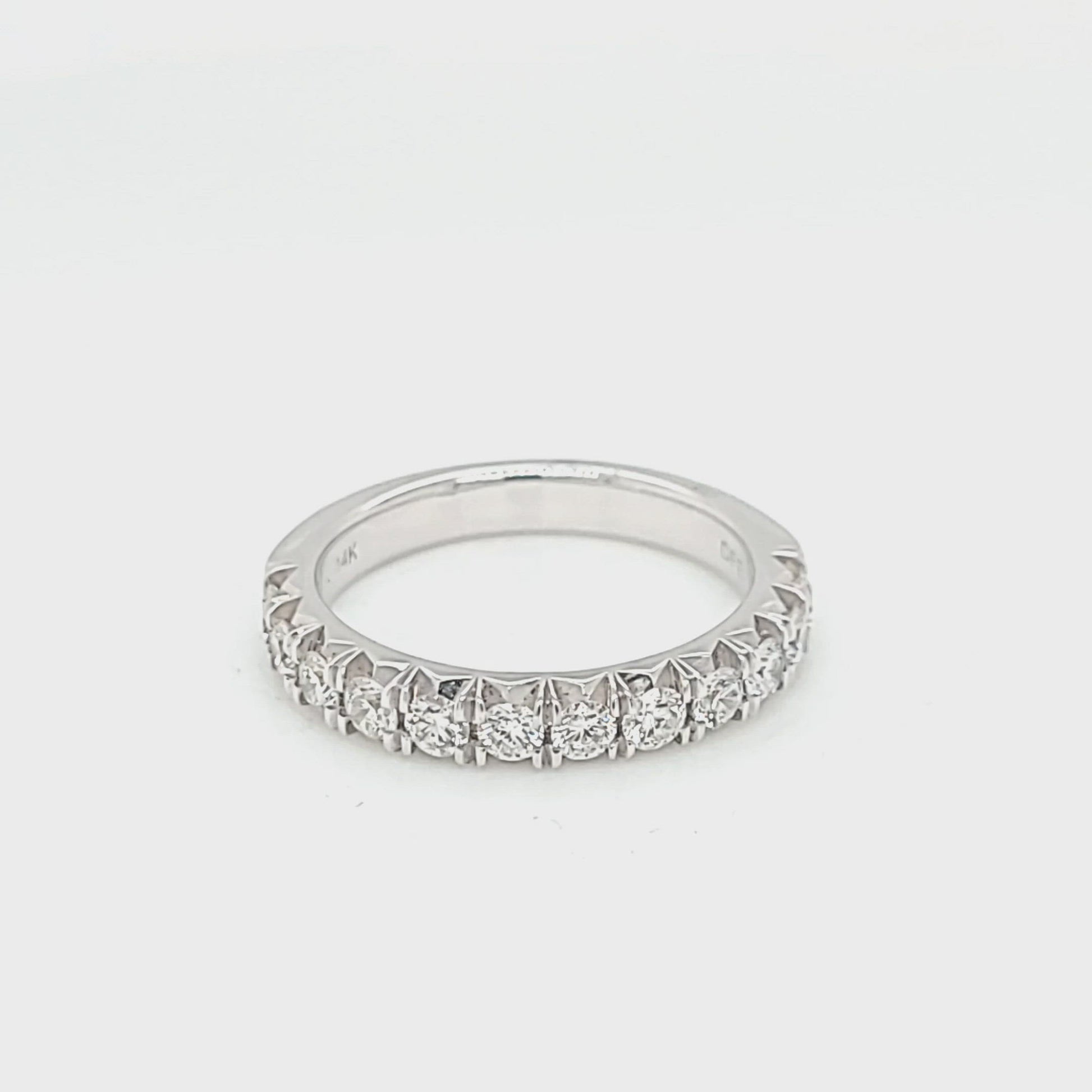Discover the understated elegance of the Single Row Diamond Pave Band from Park City Jewelers. Crafted in lustrous 14K white gold, this band presents a classic and sophisticated design. It features a row of 12 round diamonds, totaling .78ctw, each meticulously set to showcase their brilliant sparkle. The simplicity of the single row creates a timeless look, making this band an ideal choice for those who appreciate the beauty in minimalist design. Whether worn alone for a subtle statement or paired with other rings for a layered effect, this diamond band exudes elegance and style.