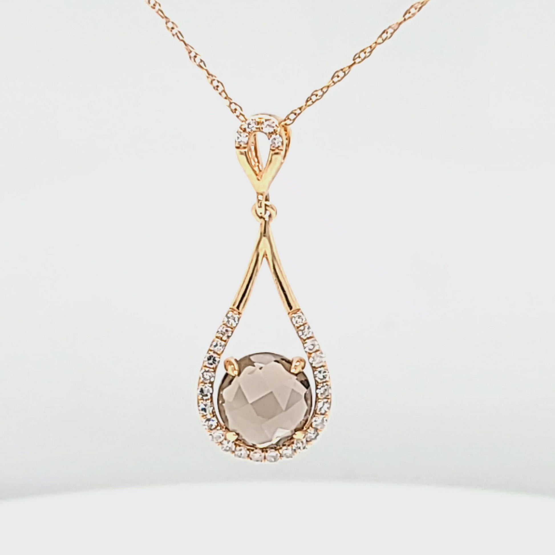14K Rose Gold .12ctw Diamond & 1.30ctw Smoky Quartz Pendant w/Chain