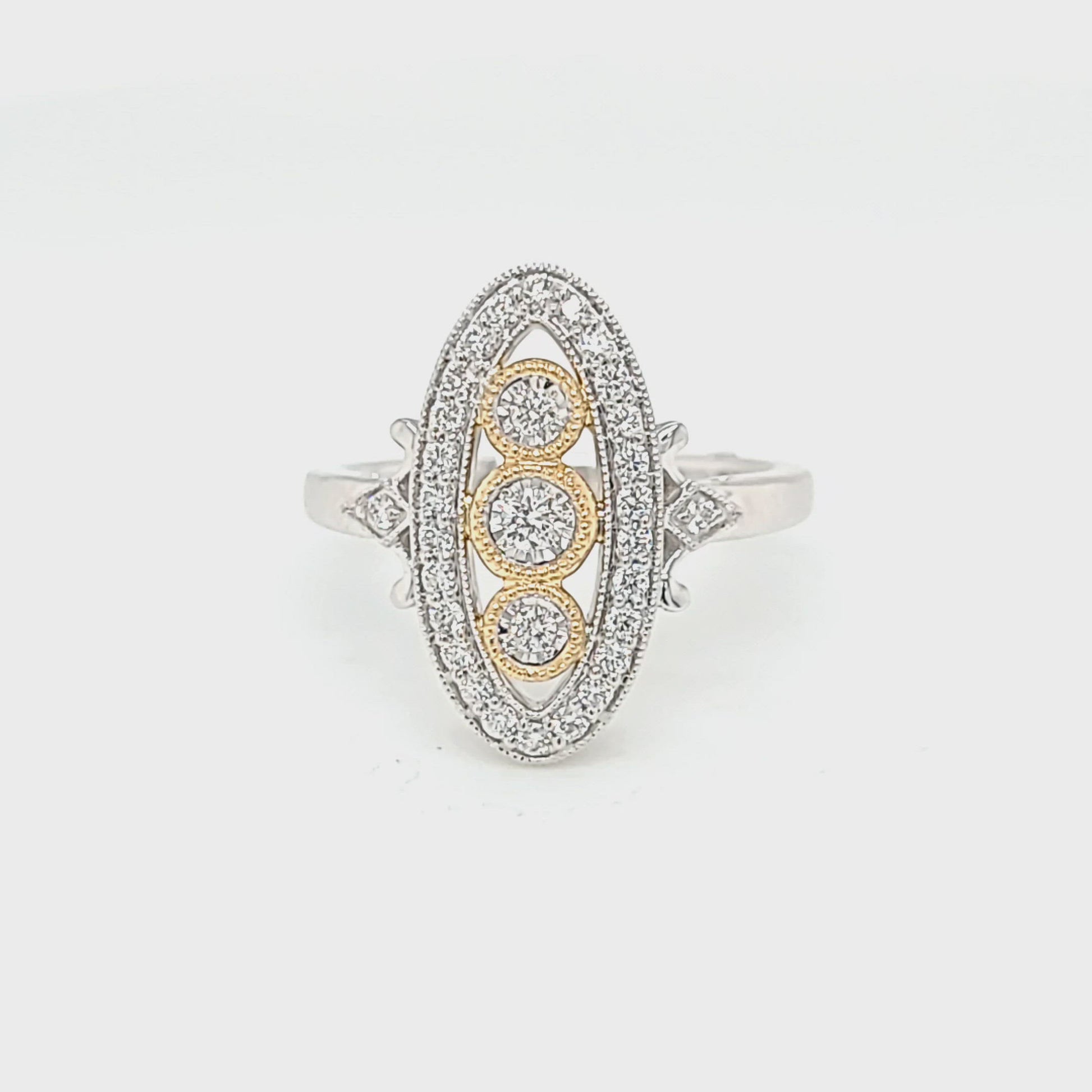 14K White & Yellow Gold .36ctw Diamond Art Deco Style Ring