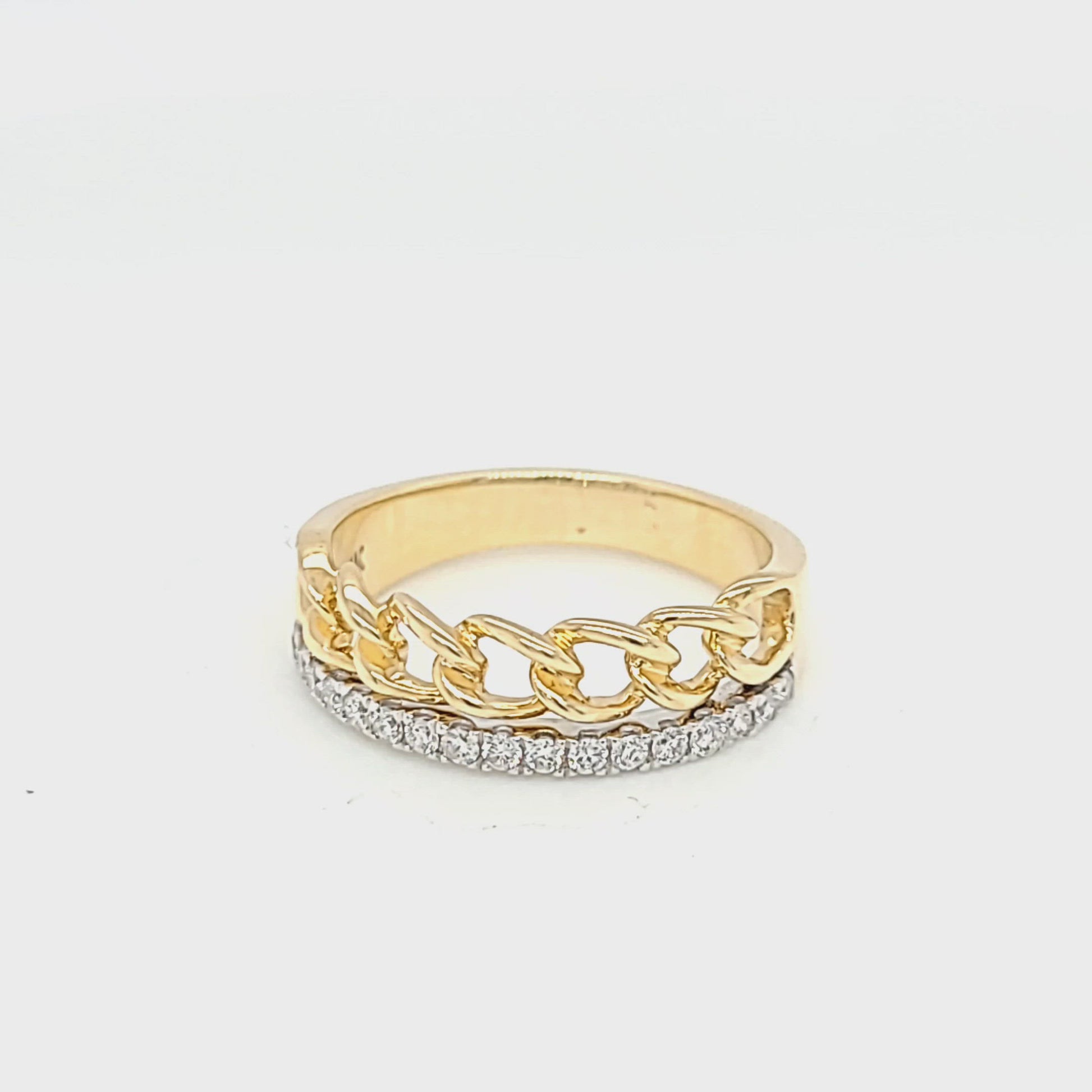 14K Two Toned Yellow & White Gold .27ctw Diamond Link Ring