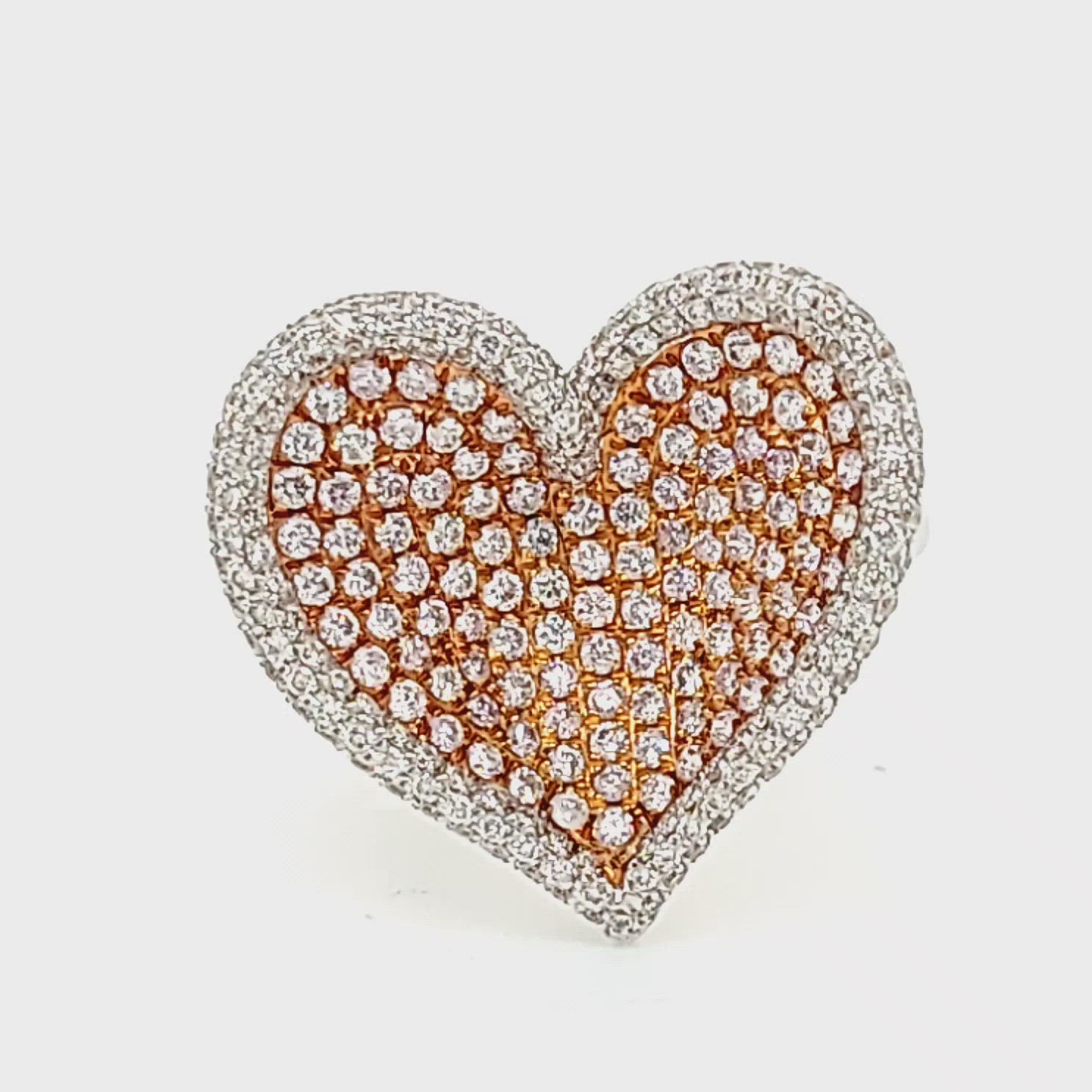 18K Rose and White Gold 1.22ctw Pink Diamond and 1.05ctw Diamond Heart Ring