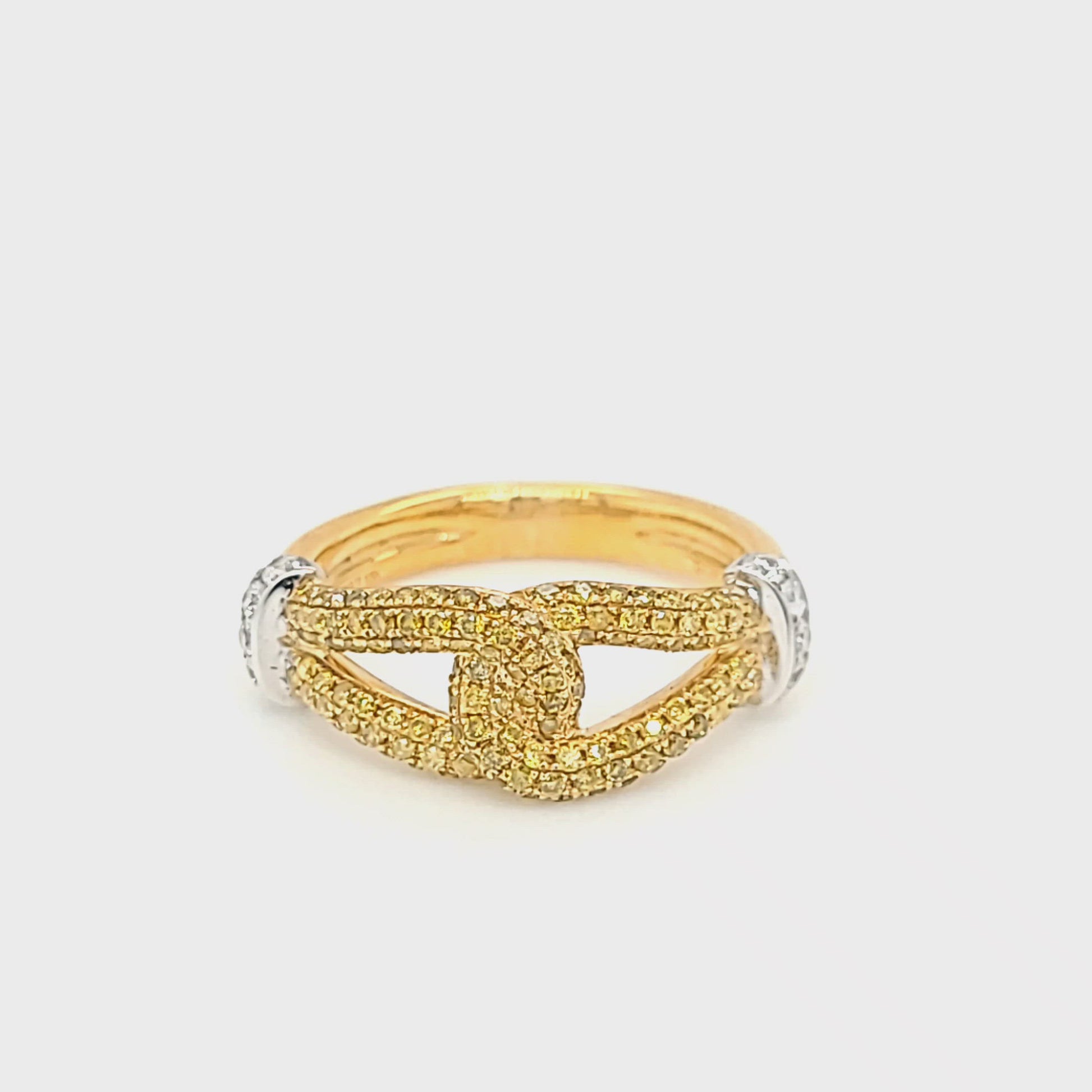 18K White & Yellow Gold .15ctw Diamond & .61ctw Yellow Diamond Intersecting Knot Ring